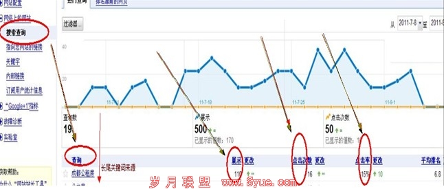 一般来说网站百分之六十以上的流量都来自长尾关键词,当然前提是这些长尾关键词都是有效的,即有搜索量的,然而首要瓶颈就是如何挖掘有效的长尾关键词呢?很多站长想到站长网提供的关键词工具,但我认为什么关键词工具都没网站统计工具来得准确,这里所说的当然是google网站管理员工具了,具体情况看下图: