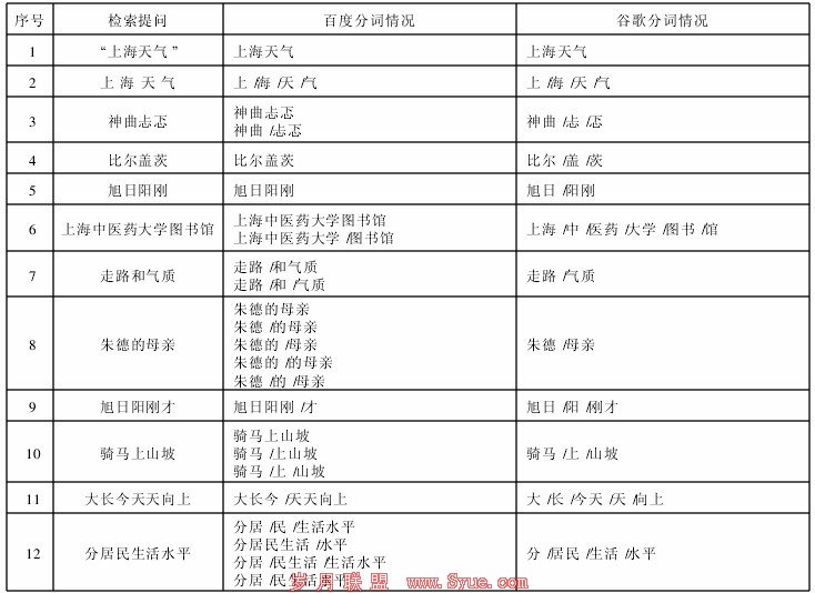 表1 检索提问在百度和谷歌中的分词情况*