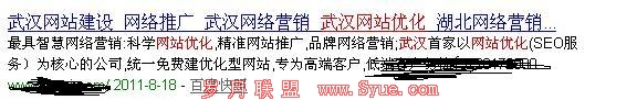 我博客里面并没有武汉网站优化这个整体词,但是排名是第一,下面这个网站title大家可以仔细看下,几乎每个词都带上武汉,这样关键词做的也少,而且显得啰嗦,排名也不咋地(这个也跟本身权重有关系) 这里还给大家看几个图,我就不过多解释了: