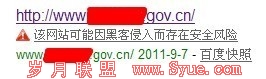 以后遇到网站被风险提示的问题,就是利用我上面介绍的方法来处理。网站的安全也日益的严重,百度的网站安全提示功能真是欢喜又欢忧。来源:www.sinesafe.cn 网站服务器安全 A5首发,转载请注明谢谢!