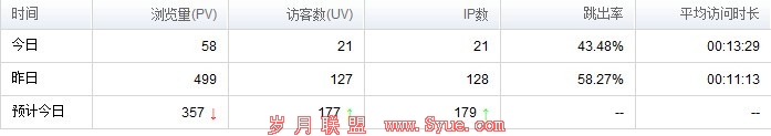 在网站概况里面我们可以看到网站今天和昨天的流量,可以和昨天比较一下今天的流量是升了还是降了,如果是持续上升,自然是对网站有利。这里有一个关于用户体验的几个数据大家要注意,IP和PV。IP高说明你推广的不错,PV越高代表你网站的内容能吸引用户,说明你的内容和用户体验是做的相当棒的。还有一个平均访问时长,如果一个用户停留在你网站的时间越长,说明你的内容和用户体验做的很好,如果你的PV低和平均访问时间都很短的话,那么说明你网站需要改进。如果你的PV和平均访问时间低于你这个行业的平均值的话(当然我们不可能知道这个行业的PV和平均访问时间平均值是多少),那么你网站的排名会处于不利的影响。跳出率当然是越低越好,这还是取决于你网站的用户体验和内容。其实PV,平均访问时长,跳出率都是体现你网站用户体验和内容好坏的重要指标。这已经从外链为皇时代走向用户体验为王的时代。这些数据是相当重要的。