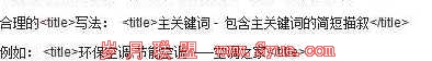 我们总结了一下,标题< title >标签的优化需要注意五个方面的问题:标题长度的控制、标题中关键字分布、标题中关键字词出现的频率、标题中关键字组合技巧。
