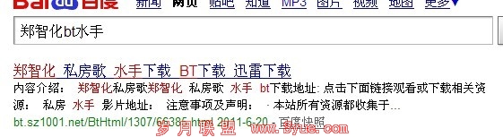 那么如果搜索内容中包含同时中文与英文百度是如何处理的呢?百度会将英文做为单独的一块来处理,然后英文前后的词也做为一个单独的块。试搜索:郑智化bt下载,结果如下: