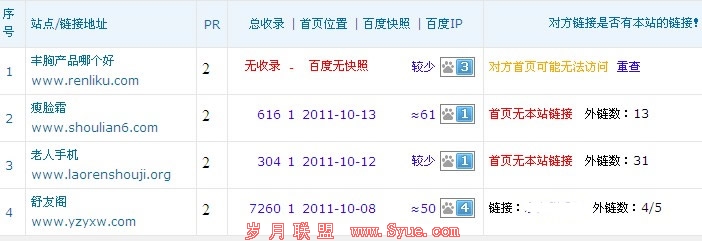 从上面几张图可以看出,这个站收录很少,只有一个首页,快照很久,说明很久没有更新了;外链也很少,友情链接更是反常,只有一个站在链接着。但是看看排名却出奇的好,第一个关键词百度搜索量是917,排名第五,第二个词百度搜索量是161,百度排名第二。收录少,快照不正常,外链少,友链不正常,为什么排名会那么好呢?相信不光我有这样的疑问,大家也是这样吧。通过仔细的研究我发现了排名好的原因: