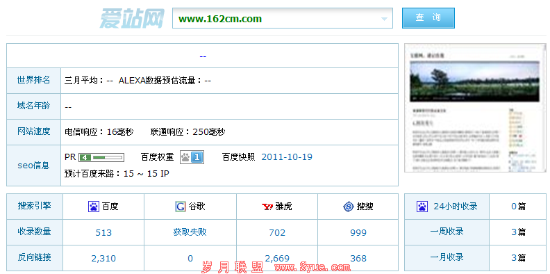 百度对于博客给予的权重很低这是一个Crazyfatpig经常阅读的博客,内容全是原创且质量很高。但是他的BR值只有1,他的PR值基本能够对应雅虎外链对应的水平,也基本反应了网站的价值,但是百度却似乎对于这些视而不见。在PR与BR相比的情况下,我发现很少会有博客的BR高于PR的情况,而一些垃圾站却会有比较高的百度权重。同时我们可以看到他的百度快照很新,说明蜘蛛经常会到这个网站上来爬行,再没有发现新的内容之后失望而归。