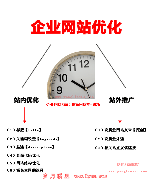 企业网站优化其实很简单,基本上分为2个阶段,一个是站内优化,一个是站外推广。企业网站SEO:时间+坚持=成功。下面我来具体说说每项的操作。
