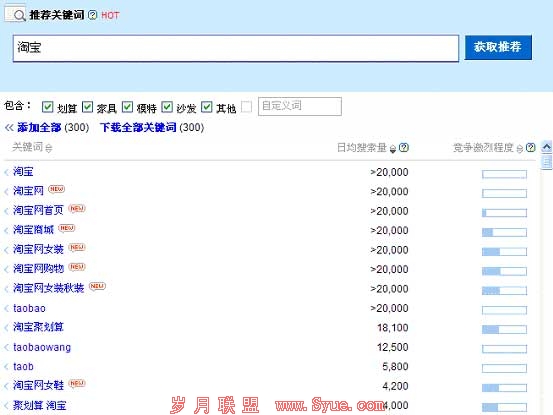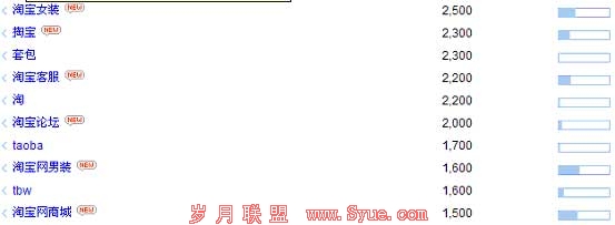 另外,细心的你肯定发现了上图中除了“ taob” 这个关键词搜索量大且竞争小以外,还有如如“taobaowang”、 “taobao”,以及下图中的“套包”、“ taoba”、“ tbw”这几个也符合搜索量大竞争度小的条件: