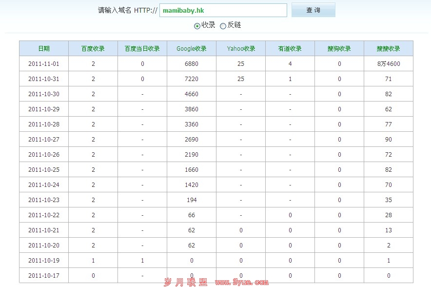 网站历史收录数据 http://tool.chinaz.com/history/?domain=mamibaby.hk