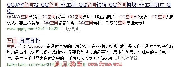 这一点说白了就是外链的数量,但这种外链不是用文字链接的那种外链。而是比如软文里留有我们站点域名形成的外链,严格来说,这不是一个外链。因为它既不是一个关键词直接点击可以访问的外链,也不是点那个网址直接跳转到对应站点的外链。所以我就说它是域名的传播广度了。下面我们就来看“空间”这个百度指数接近40000的词排名。