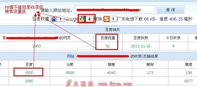 对于一些网站,可能网站的历史比较悠久,相对而言pr会比较高,但是随着WEB进入后PR时代,许多站长仍然对PR之执迷不悟,认为PR高就是一切。有些站点只是因为购买了老域名,所以PR值才会那么高,但是站点的收录和从搜索引擎的有机搜索进来的流量却只有一点点。如上图所示,而这样的站点对于你来说没有什么太大的意义。