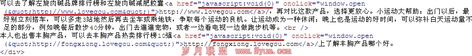 个人对代码比较白目,但类似以上的的连接都是无效的,以后可以不用去这些站发布外链。发了也白发,发多了还被百度认为作弊。链接是自然的正常的才会有长久的作用,不能是那种链接工厂的链接,或者是javascript跳转,asp跳转的链接,这些链接一点用处也没有。还有那种群发到论坛和博客的链接,由于内容相似,跟文章内容无关,所以会被识别出来,也是没有价值的。