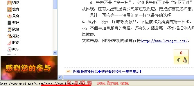 说句题外话,上周做百度知道时,链接一留一个,特别让人哈皮。等到这周去查时,发现所有带链接的回答居然全部被删除了。四级的帐号也没用,回答时加链接直接通过,谁知道后来回答都被删除了。看了些其他人用知道留下的外链,都是利用怪字符做成功的。这种方式留下的链接虽然是有效外链,但是用户体验极差。经常关注robin和zac的人可能会发现,他们总是在强调搜索体验和用户体验。要想站点长久发展,带给用户及搜索引擎的体验必须得把关好。本文由左旋肉碱排行榜http://www.lovegou.com/编写,转载请务必保留链接,同分享共进步,欧耶!
