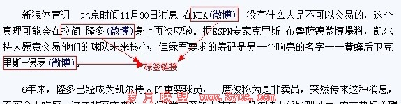 标签链接主要是通过程序匹配,即事先设置一批标签,当文章中出现同样的标签文字时即在其后自动添加链接,点击即前往设置好的页面。标签链接在主流网站中也有广泛应用。