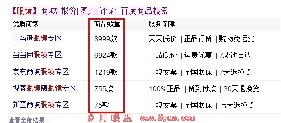 百度提供这样的平台,是为了让用户能够直接通过百度给出的平台,买到心仪的商品,完全是为了用户体验出发的。所以如果你的网站上某个类别的产品数量很多,能够给用户提供更多的选择,百度自然会让你网站得到更好的位置展示,排名就会更靠前。如图展示: