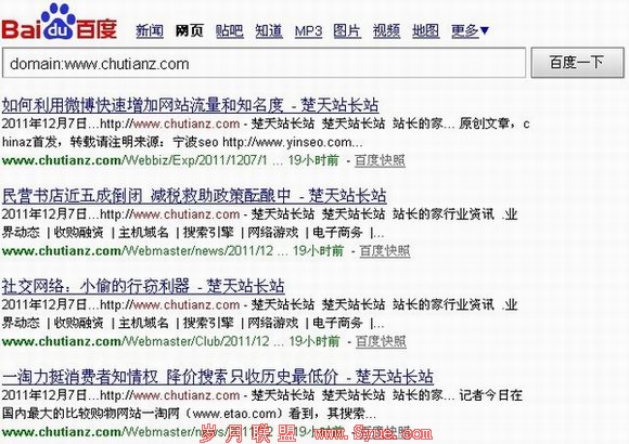 事实上,domain命令是查询你网站链接在百度的收录数量,上图也可以看出,绝大部分的链接是出自你自己的网站,也就是说,在自己发布文章的时候,在文章来源处或者文章里发布自己的链接地址,会被快照到,使用domain也会找出来。因此domain并非百度查外链的绝对命令,希望大家不要过分的依赖这种查询外链方式。