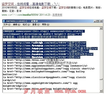 第二个案例是一个利用Tag聚合页面聚合内容来实现搜索引擎排名从而吸引流量的作弊犯法。这也教了我们一些Tag聚合的技巧。实际上Tag页面在各类网站中是非常常见的,Tag的聚合能力确实能够很好的方便读者,但图示手法实际原理是通过拆分关键词,然后根据拆分后的关键词进行或匹配,匹配精度自然不能达到非常优质。更重要的是,通过牵强的分词关系构造出的内容,很多与关键词并没有精准的对应关系,在这种以关键词优化为目的的Tag页面上,确实找不到用户体验。此类作弊方法墨明棋妙认为是比较难完全通过程序检测的,由程序自动判别相关度而后提取嫌疑页面而后人工判别可能是一种有效的处理方法,同时也可通过用户点击行为来进行一定量的监控。