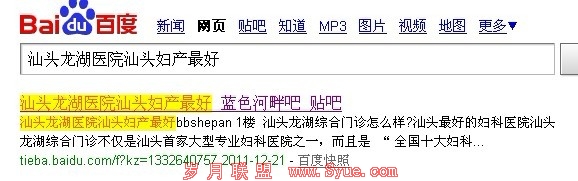 搜索‘汕头龙湖医院汕头妇产最好’,能直接进入医院主网站,那是最好的。但是明显自然排名第一个内容不是主网站,而是百度贴吧!那么这个流量直接就被拦截了,这个软件刷出来的词,就是在浪费钱,而让第一个内容直接不花任何费用,就可以得利!