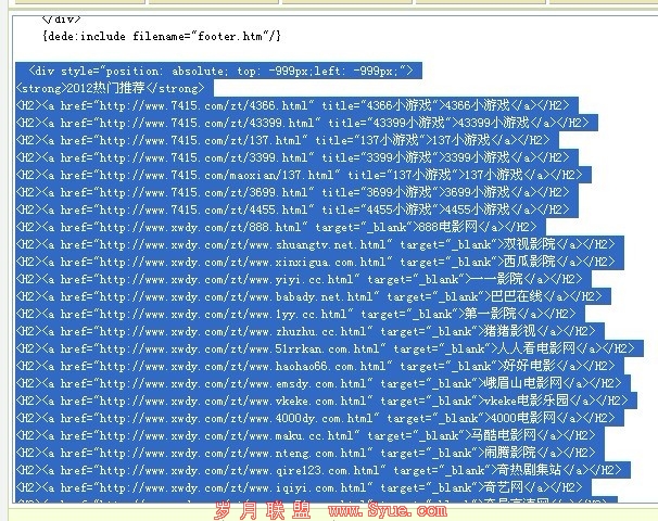 因为不会写代码,所以大多站长模板都是网上得来,包括我的程序也是网上下载的,这时你就要注意了,要找朋友帮你看看是否自身带有木马或都暗链。没有还好,如果有你却没发现,那么就来严重了,轻者快照跟不上不收录,重者直接K站。看下图