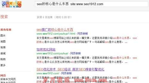 关键词 site:www.seo1912.com 这个方法,来看看截图。