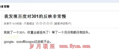 5个月,甚至一年多时间百度蜘蛛还没有正确识别301,仍然收录着被301重定向网址的事实让人不得不怀疑,百度是不是真的不支持301跳转?是不是真的不支持网站首选域?