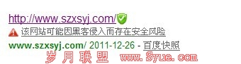 网站被入侵,应该碰到这个问题的朋友不少,但是网站被入侵后排名从二十多页提升到第二页可能就会感觉有些费解了。凡凡SEO就在最近碰到了这样的一个问题,今天就和站长朋友聊聊究竟是什么原因造成的。前几天,突然发现帮朋友管理的一个站,网站标题、关键词、描述等都变成了一些垃圾内容,而且每次查询的标题、关键词、描述都不一样,可以肯定是黑客入侵了。其实这个站只是个小站,可能是新手黑客试试自己的水平如何,而且正好这个站程序本身存在一些漏洞,就被钻了空子。由于我对程序这块了解还不足,当天没有解决掉,第二天百度就对网站做了下图的提示:
