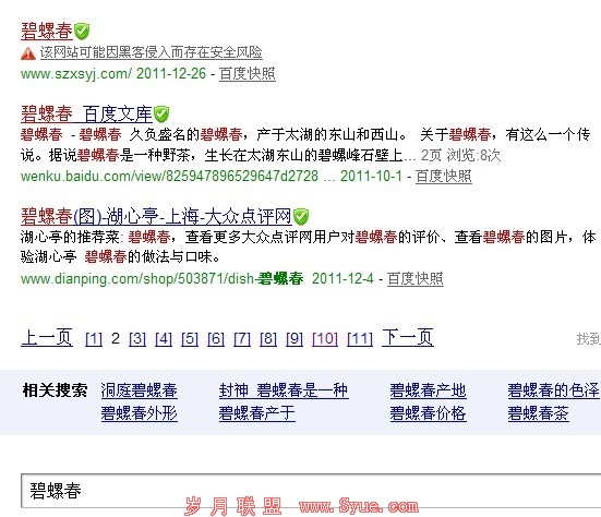 碧螺春这个词的百度指数虽然也不是特别高,只有1000多,但这个站因为之前被百度惩罚过,出过很多问题,所以出现进入第二页是有些不正常的,应该这个排名会很快下降的。经过分析,出现网站被攻击排名迅速提升的原因有以下几点: