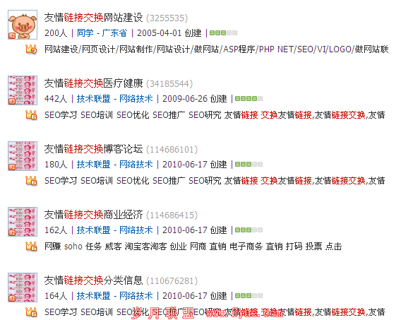像QQ群也是一个交换链接的好地方,打开QQ群官网输入链接交换,就可以看到很多链接交换的群,有的群上面会标注该群换哪些行业的链接,然后选择适合的群加入即可。