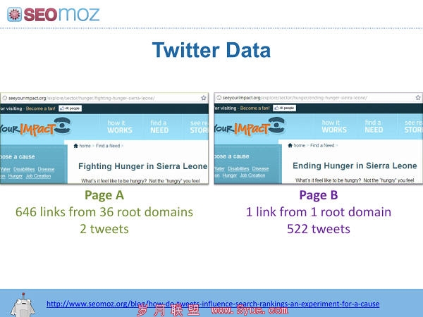 他们做了一个实验,一个是旧有的SEO操作策略,建立大量且具差异化的反向连结;而另一边则是让许多人去推这个网页。