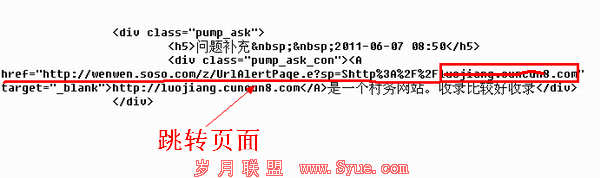 作为外链建设除了是为了吸引流量,更重要的是要传递权重。但是搜搜问答平台并不能传递权重。具体我们可以通过页面的源代码来查看。如下图所示,在代码中我们可以发现我们留下的链接其实是一个跳转链接。而这种方式的链接我想大多数的站长都应该知道是并不能传递权重的。所以即使你这个页面在搜搜问答平台做再多的链接也不能提高权重,提高排名的。