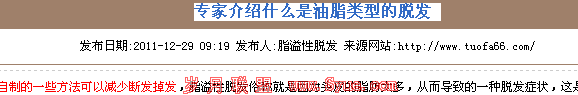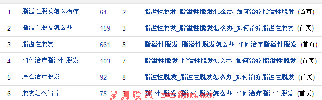 以上三点方法是SEO菜哥提升自己网站排名实例,并非虚乌。做SEO不就是所谓外链为王、内容为皇的道理,但是真正做到这几点有几个。外链为王,你是如何做好外链建设,内容为皇你是否想着用户体验,SEOER站友们有没有自我反省过这些道理。(SEO菜哥原创A5首发)脂溢性脱发http://www.tuofa66.com