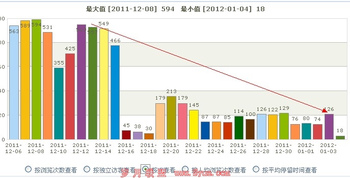 流量是一个站点的立站之本,不论你是靠广告或者转换率盈利的站点,没有流量就意味着你的站点已经失败了。同样的流量对于权重的影响也是很大的。我们可以从笔者站点最近权重的变化看出端倪。笔者的站点因为改版,没做好404错误页面,导致站点的流量大量的流失。站点由原来的日ip600左右骤降到100左右。而流量的降低很明显的反映在了站点的权重值上了。如图二所示,笔者使用的是爱占网的工具进行查询权重值,权重值随着站点的流量进行一个有规律的波动。那么如何处理流量的问题呢?其实这个问题答案很多,笔者在这边想要以自己的经验告诉大家,优化需要细心,特别是在站点改版期间,一个粗心的举动都有可能使你之前的努力前功尽弃。