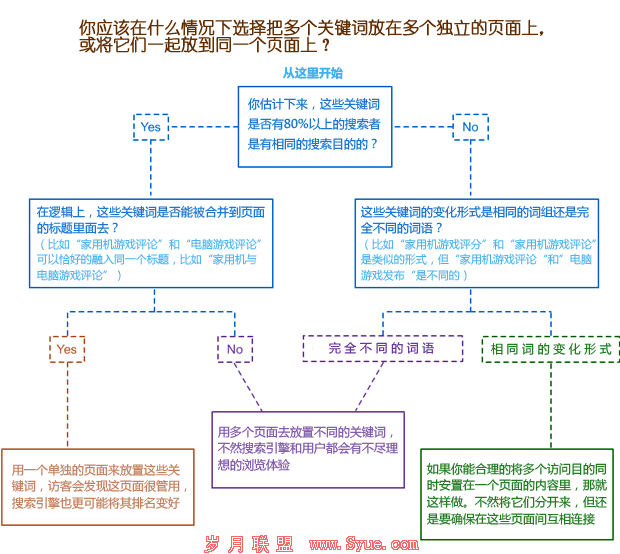 当网站有一堆栏目,什么栏目应该和其他栏目归并起来,又什么栏目应该分开?上面一张图较好的解答了这个问题,也不再多做阐述了。总之搜索引擎会基于它的用户的角度出发,努力让搜索者获得最好的搜索体验,所以大多数情况下,出于用户体验优先的考虑会更有助于SEO。