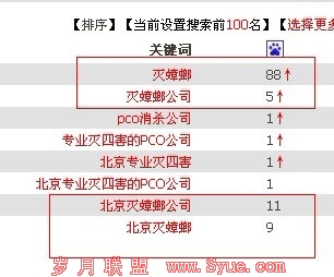 最后,还是说一下,网站的关键词重要的不是去大量发垃圾外链,而是要去做一些高质量的外链或者锚文本!才能按照一个月的计划把网站优化上去,排名不重要,重要的是后期的转化!所以说外链也不重要,重要的是要有质量的外链数,才能有真排名,不想看到网站排名像升降机一样徘徊,就好好去理解吧!或者直接搜索一下“灭蟑螂公司”去看看那个网站是笔者优化的,顺便看看里面的结构,分享一下网站一个月的排名情况图片: