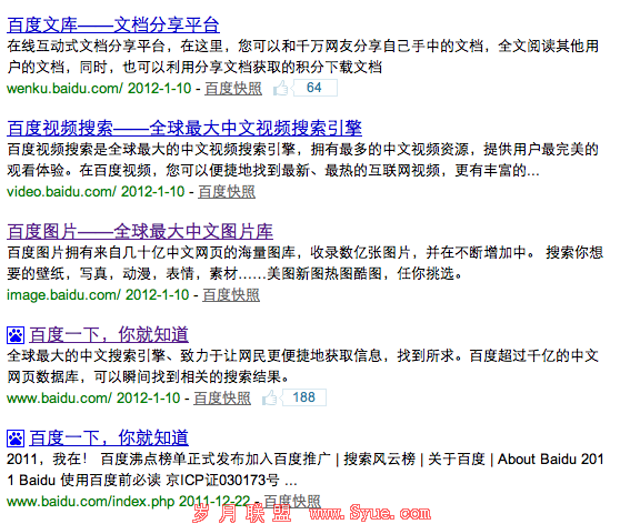 我接下来又试着对其他关键网站进行了搜索,大部分结果后面没有出现该推荐手势。但是Google.com和baidu.com的部分搜索结果后面是有该手势和被推荐次数的。这说明百度可能的确是在测试部署该按钮。但是另外有一点奇怪的是同事刚刚用IE和Chrome却无法看到这个按钮,用Firefox才能看到(我的Chrome是可以看到的),这又是什么原因呢?
