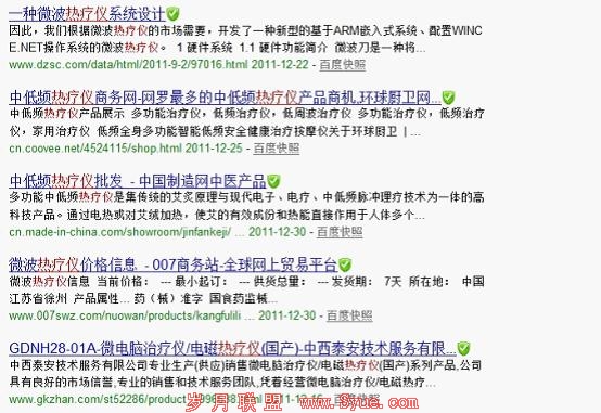 做过营销的朋友想必都知道,除了所谓的网络营销,搜索引擎优化,简称SEO,大家都应该听过。如果一个网站没有做搜索引擎优化,那么网站是很难让理想客户找到您的。例如我随便举个例子。比如最近要过年了,我想给我父母买一个热疗仪,于是我就在百度搜搜”热疗仪“这一关键词。