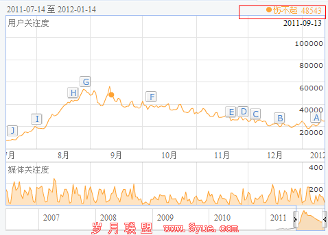 可以看到笔者用的伤不起这个关键词的指数飘浮在两万次搜索量左右,竞争如此大的关键词为何一些快照不新的网站都可以稳稳的占据着首页呢?而这也不就表明网站快照跟网站排名没关系吗?所以说,笔者认为,网站排名的高低与网站排名的新旧没有直接的关系,况且快照在网站中只是反应出蜘蛛是否爬行过网站抓取了网站内容和搜索引挚为了给用户提供快速浏览的一条通道而已。