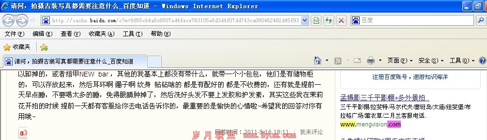 没有任何网站链接的显示,一段百度知道的提问,没一点能看出这个是网站的百度相关域中的页面,但我们可以通过百度快照来查询是否做过竞价呢,如下图: