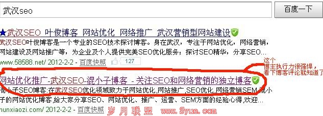 这个博客也许很多人都熟悉吧,武汉seo排名第二的,以前有过第一的记录,也出现过在全国seo这个词的排名,外链那些就不用具体的说了,人脉关系就是这样形成的,博主确实很混的,已经保持了一段时间,再给大家看下博客里面的信息就明白为什么能保持的住排名了,见下图: