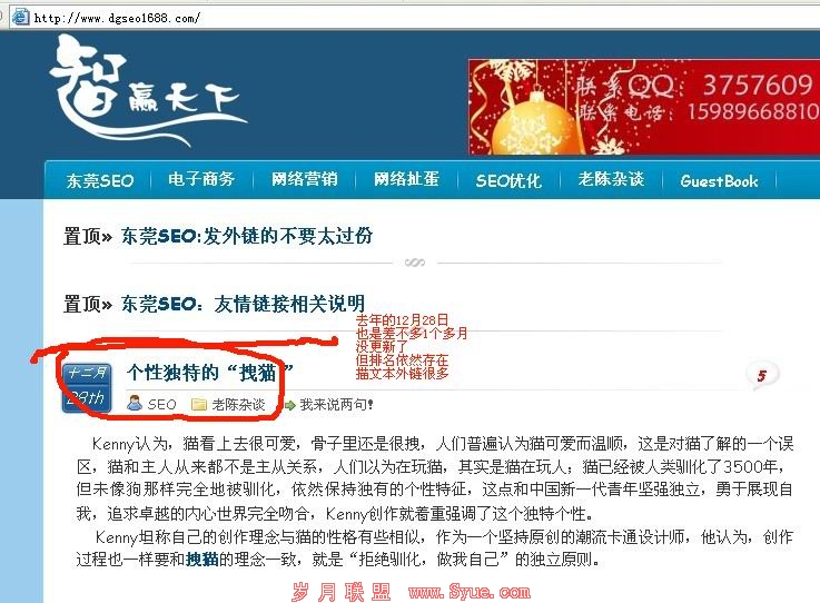 更新的内容也不是相关的,靠的肯定是足够强大的描文本外链支撑住,网站权重也是很不错,就算网站长时间不更新,排名还是可以保持的住,只要更新一下,排名就有所恢复,也有机会进到首页去,这个博主确实有很多外链资源,有的是参加了电商圈seo比赛获取的,就是武汉seo蛋疼网的老陈另一个博客哦。