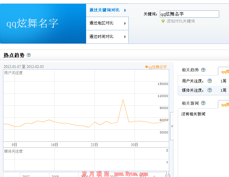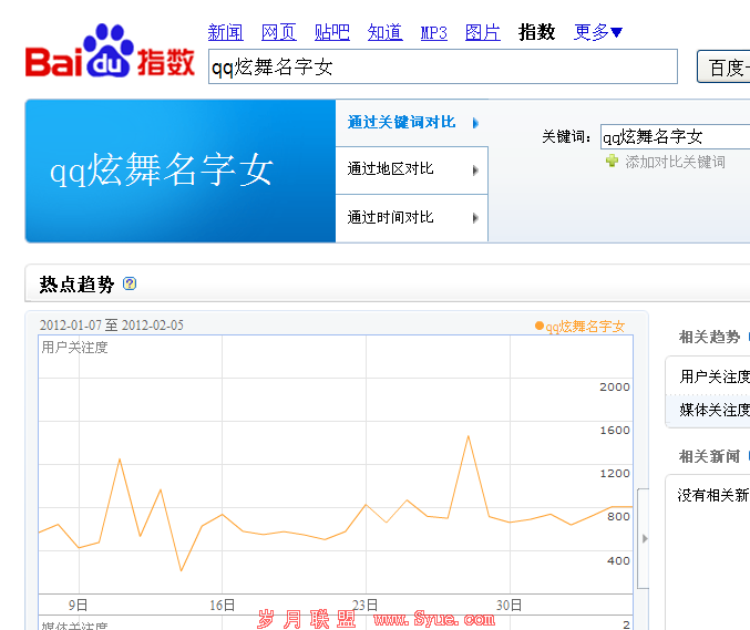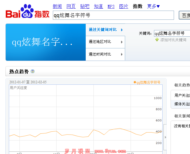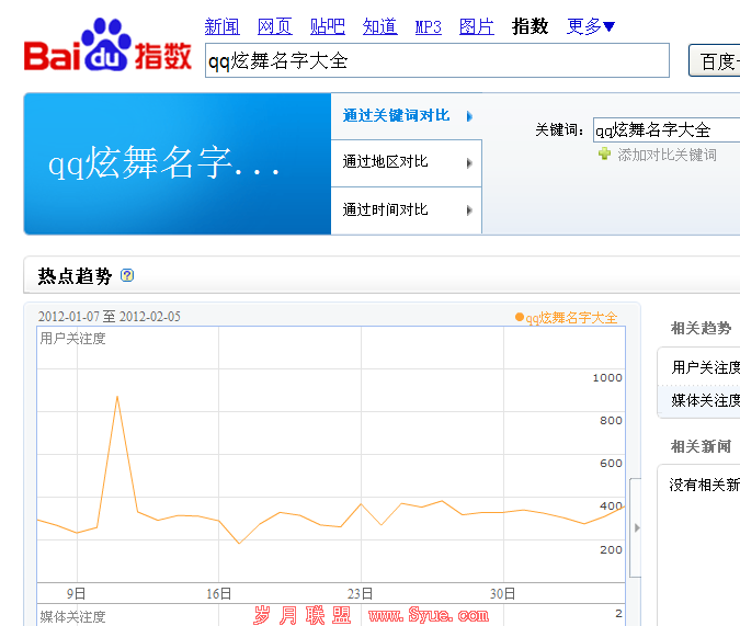 首先先看主关键字:qq炫舞名字的百度指数