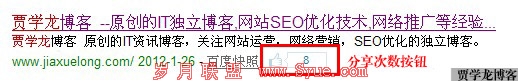 在同一天给自己的几个网站安装了百度分享工具,自己点了几下分享。其中一个站是第二天就在搜索结果里面显示喜欢人数,我的博客是两三天之后才显示,还有一个至今未显示。综合分析起来可能是和快照还有内容的更新有关。因为至今没有显示的站很长时间没有更新文章了,不常更新原创内容,快照也来的慢,所以不显示也就很正常了。