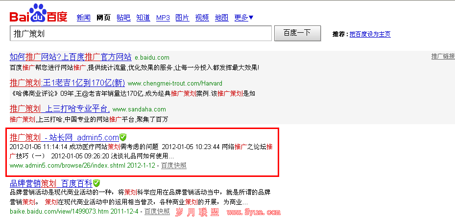 很多人高看了面包屑导航,把它的作用无限的扩大,这很容易引导新手朋友们进入误区。面包屑导航确实是有提升用户体验以及稍微的关键词排名作用,所以很多人对于面包屑的抒写采用核心的关键词。然而看看那些所设置的核心关键词是不是存在着非常大的竞争,除非你的网站权重高,且这个栏目被给予的权重也高,不然还是用一些竞争力不是太大的长尾关键词来做效果会更佳。比方A5面包屑中的推广策划: