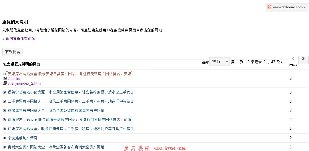 该类错误多发送在网站的列表页,由于系统自动生成,所在列表页的标题难免雷同,建议在系统设置的时候,可以添加列表页标题 第一页,第二页,可以避免这种错误发生。