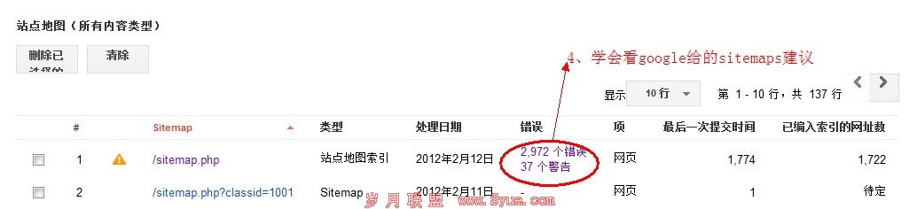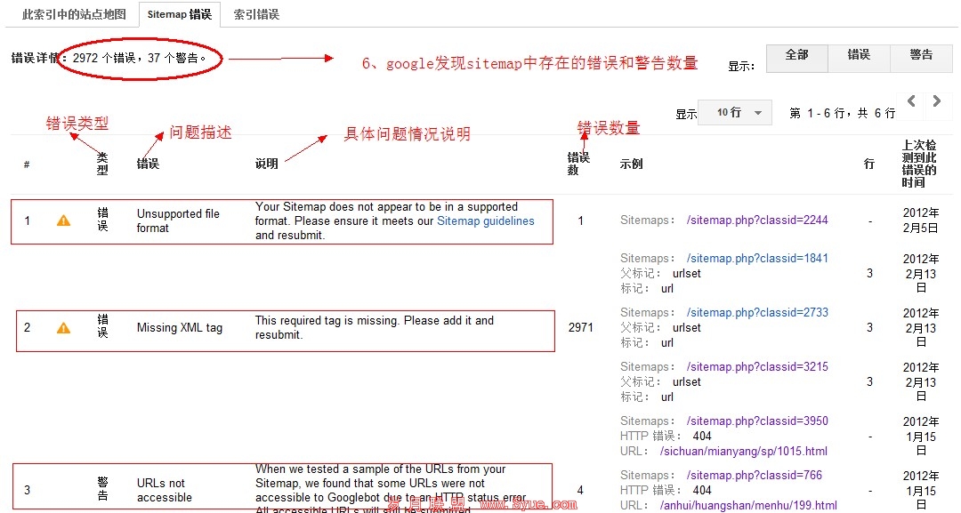 四,解读google发现的sitemap的错误和警告