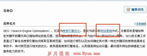 这一点我们可以从权重很高的百度百科中学到。我们可以发现在百度百科中的内容中主体部份一般都有相关的关键词之前的内部链接的互链。如下图所示: