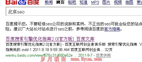各位站长们看了前2行,你们心疼吗?你们怀疑吗?难道百度要对seo大开杀戒吗?再看排名第一的这个百度文库,大家都知道在百度搜seo的排名第一的应该不是这个(官方版),而今天却忽然冒了出来,我开始怀疑百度人工搞上去了。然后我接着搜了一些其他词,请看下边截图。