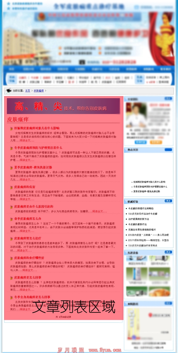 笔者并非一概而论的说频道页、栏目页或专题页不适合做为竞价着陆页,这是需要因地制宜的。首先来说,如果是非特制的频道页、栏目页或专题页,其页面结构类似与网站首页,但内容广度和信息量次于首页,深度又高于首页。这样的页面笔者也见过不少,几乎都是结构模块式的布局,一个栏目一个栏目的逐行放置。做为夹在网站首页和列表页之间的页面,不论是从用户体验还是SEO的角度,目前都不太适合用作医疗竞价的关键词着陆页。