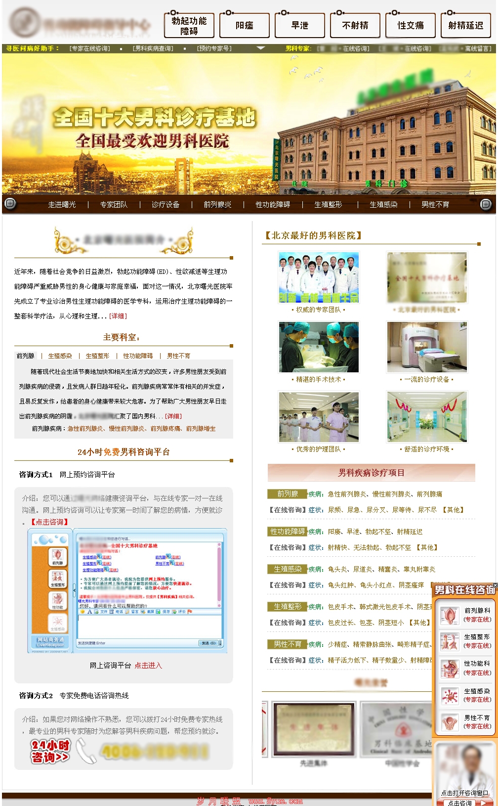 图2是关键词“前列腺炎”的某医院竞价着陆页。笔者认为,用户搜索“前列腺炎”或相关的长尾匹配词,其目的就会包含潜在的转化需求。而图1的着陆页页面传达给我们的信息,更多的是该医院对于男科疾病的治疗的权威性和综合性。这样的页面就属于偏向参考型角度因素更多一些。这里笔者无法评判一个竞价着陆页的好坏,因为不论是搜索的角度,还是个人体验的立场,都无法舍身处境地去判断,所以本文所要阐述的内容,是如何更好的提高竞价着陆页的转化率,其中的意见和建议也仅供参考。