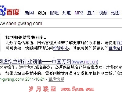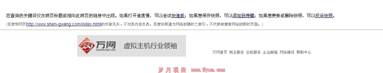 2012.2.15号早上,我来到公司查看自己的一个项目,发现快照竟然变成万网的了;这到底是什么原因导致的呢?于是去各大站长论坛去请教,终于有人指出来了,这可能是网站很长一段时间打不开,和频繁修改标题所造成的。
