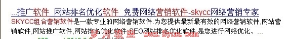 大家可以到百度里搜索skycc组合营销软件,通过上图我们也可以毅然发现,它的原理同数字和中文组合词是差不多的。有一个不同就是,其实sky和cc也还是可以再分的。这是同数字型的一个小区别。所以我们在原创文章里,如果要保持内容与标题的相关性的时候,我们还可以出现sky和cc或者他们的组合skycc,这就是懂得分词写文章的技巧。